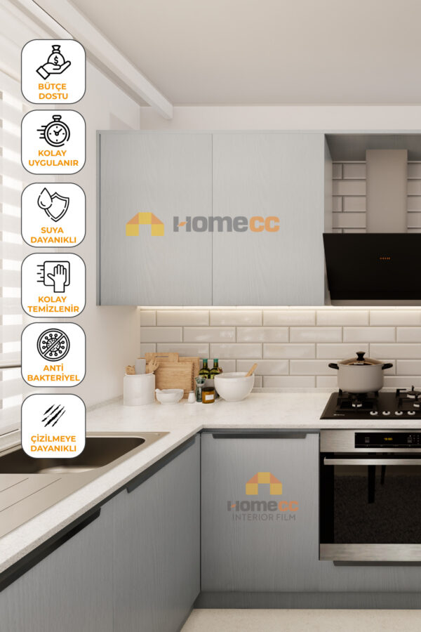 Minimal Akça – Doğal Ahşap Seri | 122cm genişlik, kendinden yapışkanlı, suya ve ısıya dayanıklı premium kaplama folyosu. Mobilya, kapı, duvar ve mutfak dolabı yenileme için ideal. Kolay uygulama, profesyonel sonuç.
